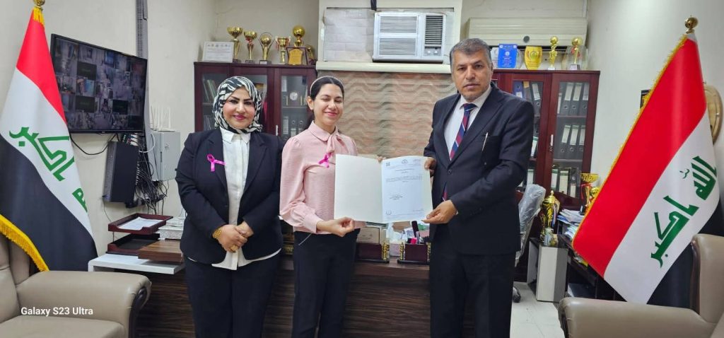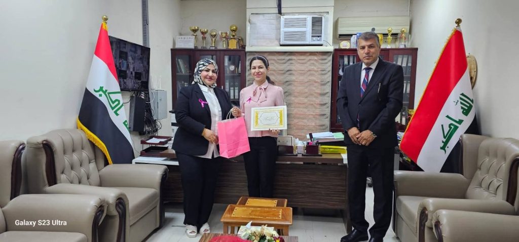 “تكريم الطالبة آسيا خلدون لتفوقها في مرحلة الماجستير وإنجازها مناقشة رسالتها بالمدة المحددة”كرم عميد كلية التقنيات الأحيائية الأستاذ الدكتور محسن هاشم رسن، برفقة المعاون العلمي الأستاذ الدكتور رسالة رزوقي اللامي، الطالبة آسيا خلدون تقديراً لتفوقها في مرحلة الماجستير ومناقشتها لرسالتها ضمن المدة المحددة دون تمديد.وجاء هذا التكريم تثميناً لجهود الطالبة ومثابرتها العلمية التي عكست التزامها العالي وحرصها على تحقيق التميز والإنجاز ضمن المعايير الأكاديمية المعتمدة في الكلية.