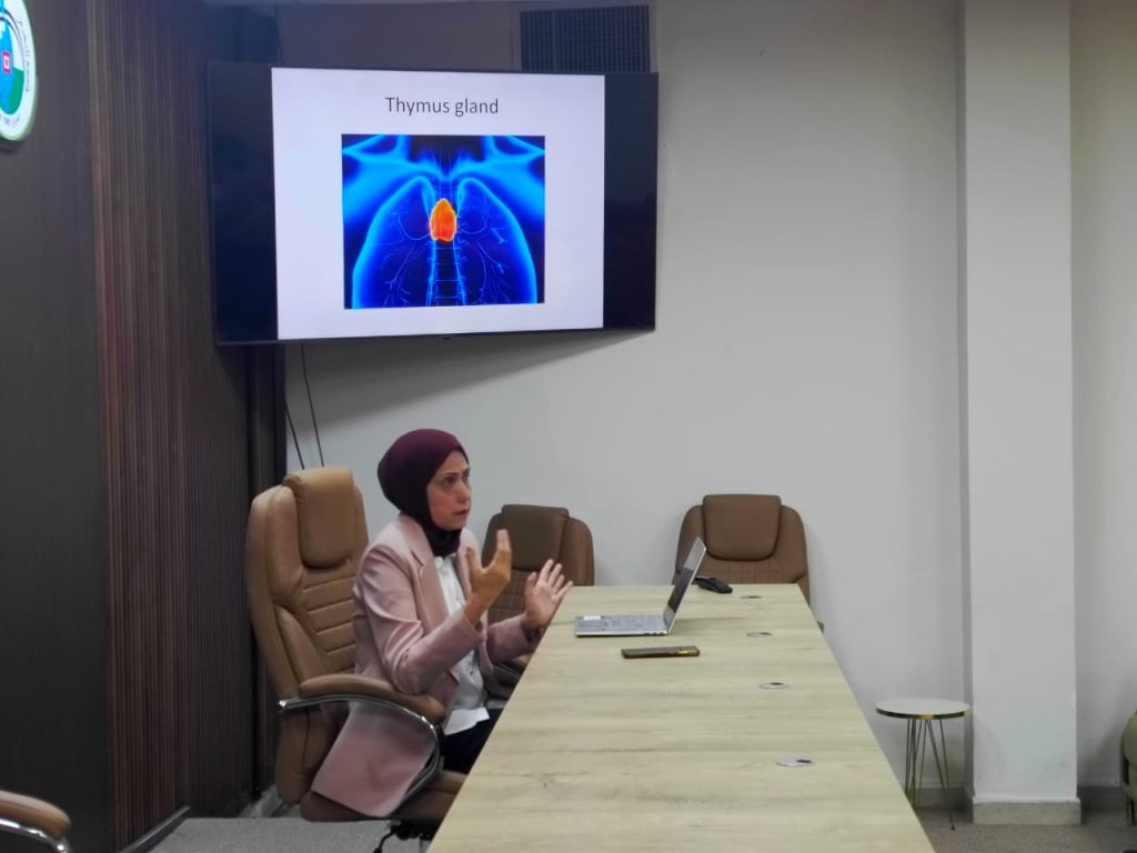 “رئيس قسم التقنيات الحيوية الجزيئية والطبية تقدّم ندوة علمية حول الابتكارات في علم المناعة”برعاية عميد كلية التقنيات الأحيائية في جامعة النهرين الأستاذ الدكتور محسن هاشم رسن المحترم، أقام قسم التقنيات الحيوية الجزيئية والطبية ندوة علمية بعنوان “الابتكارات في علم المناعة”، قدّمتها رئيس القسم الأستاذ الدكتورة شهداء مهدي صالح، وذلك على قاعة الرازي في الكلية.تطرقت الندوة إلى أحدث التطورات العلمية في مجال المناعة، ودور التقنيات الحيوية الحديثة في تطوير أساليب التشخيص والعلاج، كما شهدت الندوة حضوراً مميزاً من التدريسيين وطلبة الدراسات الأولية والعليا.وفي ختام الندوة، ثمن الحاضرون الجهود العلمية التي تبذلها الكلية لتعزيز الوعي البحثي ومواكبة المستجدات العالمية في العلوم الأحيائية.