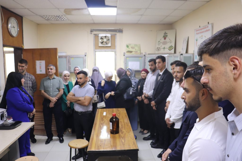 “كلية التقنيات الأحيائية تستقبل وفداً من جامعة الفلوجة في زيارة علمية لتعزيز التعاون الأكاديمي”برعاية السيد عميد الكلية أ.د محسن هاشم رسن المحترم، استقبلت كلية التقنيات الأحيائية في جامعة النهرين وفداً من كلية العلوم التطبيقية في جامعة الفلوجة، ممثلاً بقسمي التقنيات الأحيائية والتحليلات المرضية، ضمن زيارة رسمية هدفت إلى تعزيز التعاون العلمي وتبادل الخبرات بين الجامعتين.ضم الوفد عدداً من أعضاء الهيئة التدريسية وطلبة المرحلة الرابعة، حيث اطلعوا على المختبرات والأقسام العلمية في الكلية، واستمعوا إلى شرحٍ تفصيلي عن طبيعة العمل البحثي والتطبيقي فيها.وكان في استقبال الوفد السيدة معاونة العميد للشؤون العلمية الأستاذ الدكتورة رسالة رزوقي حسين المحترمة، برفقة السادة رؤساء الأقسام العلمية، الذين رحبوا بالضيوف مؤكدين حرص الكلية على مدّ جسور التعاون العلمي مع نظيراتها من الجامعات العراقية، بما يسهم في تطوير العملية التعليمية والبحثية.