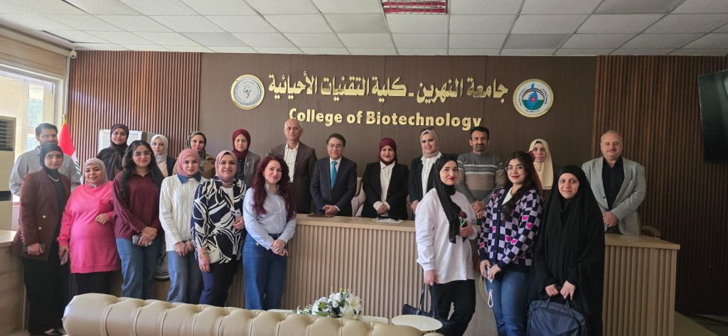برعاية السيد عميد كلية التقنيات الأحيائية الأستاذ الدكتور محسن هاشم رسن المحترم، نظمت كلية التقنيات الأحيائية ندوة علمية بعنوان “New Development in Cancer Chemotherapy”، تناولت أحدث المستجدات والتقنيات الحديثة في مجال العلاج الكيميائي للسرطان.ألقى الندوة الأستاذ الزائر أ.د. نجم المسعودي من جامعة كونستاتنز في ألمانيا، حيث استعرض أبرز الابتكارات البحثية والاتجاهات العالمية الجديدة في تطوير العلاجات الكيميائية وتحسين فعاليتها وتقليل آثارها الجانبية.أقيمت الفعالية على قاعة الرازي في كلية التقنيات الأحيائية، يوم الاثنين الموافق 24/11/2025، في تمام الساعة العاشرة صباحاً، وسط حضور من التدريسيين والباحثين وطلبة الدراسات الأولية والعليا.واختتمت الندوة بتأكيد أهمية مواكبة التطور العلمي في مجال علاج السرطان، وتعزيز التعاون الأكاديمي والبحثي مع الجامعات العالمية.