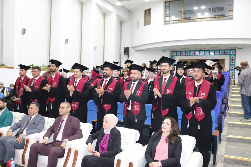 برعاية وحضور السيد عميد كلية التقنيات الأحيائية أ.د محسن هاشم رسن المحترم، وبمشاركة السادة معاونيه والسادة رؤساء الأقسام، نظمت الكلية حفل ترديد قسم الالتزام المهني لطلبة المرحلة الرابعة، في أجواء أكاديمية مهيبة عكست أهمية هذه اللحظة المفصلية في مسيرة الطلبة العلمية والعملية.وتضمن الحفل ترديد الطلبة لقسمهم المهني، مؤكدين التزامهم بالقيم العلمية والأخلاقية، واستعدادهم لتحمل مسؤولياتهم المستقبلية في خدمة المجتمع وتطوير المجال التخصصي.ويأتي هذا الحفل تتويجاً لسنوات من الجد والاجتهاد، وانطلاقةً نحو حياة مهنية قائمة على النزاهة والكفاءة والعطاء.