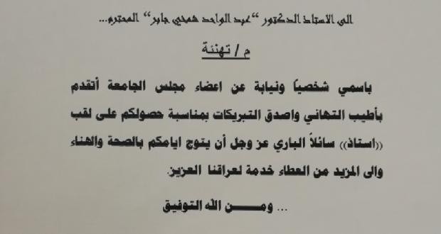 ترقية الدكتور عبد الواحد شمخي الى مرتبة الاستاذية