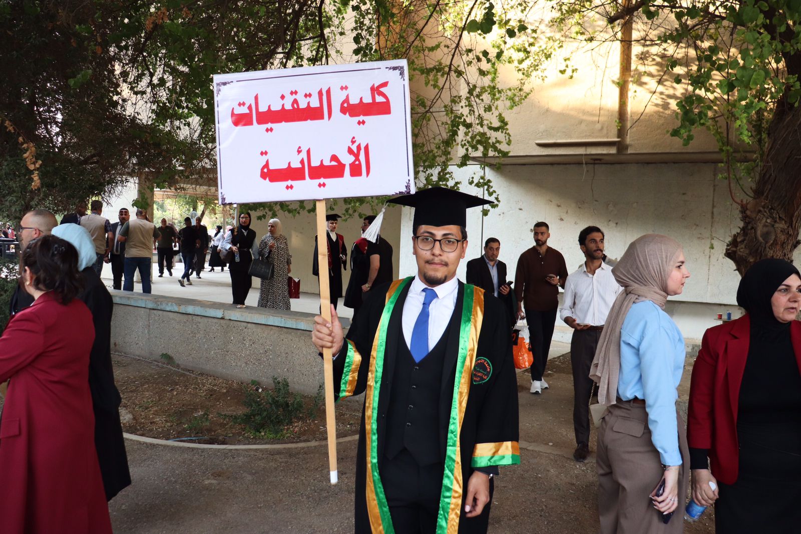 شاركت كلية التقنيات الأحيائية بجامعة النهرين بتميز لافت في الاحتفال المركزي لتخرج الدورة الثانية والثلاثين، الذي أقامته الجامعة برعاية وحضور وزير التعليم العالي والبحث العلمي الدكتور نعيم العبودي، والذي شهد تكريم الطلبة الأوائل على الكليات.وحضر الاحتفال عميد الكلية الأستاذ الدكتور محسن هاشم رسن برفقة نخبة من الأساتذة والتدريسيين والموظفين والطلبة، حيث عبر الجميع عن فخرهم بالمنجزات التي تحققت في مسيرة التعليم العالي خلال السنوات الثلاث الماضية، وما رافقها من تطور نوعي في التصنيفات العالمية والبحث العلمي والرقمنة الأكاديمية.وقد تخلل الحفل تكريم الطالب الأول على كلية التقنيات الأحيائية ( هاشم صباح مهدي) ضمن المتميزين من خريجي الجامعة، في مشهد يجسد ثمرة الجهود الأكاديمية والبحثية التي تبذلها الكلية في إعداد كوادر علمية مؤهلة تواكب متطلبات التنمية وسوق العمل.شعبة الإعلام والاتصال الحكوميكلية التقنيات الأحيائية – جامعة النهرين
