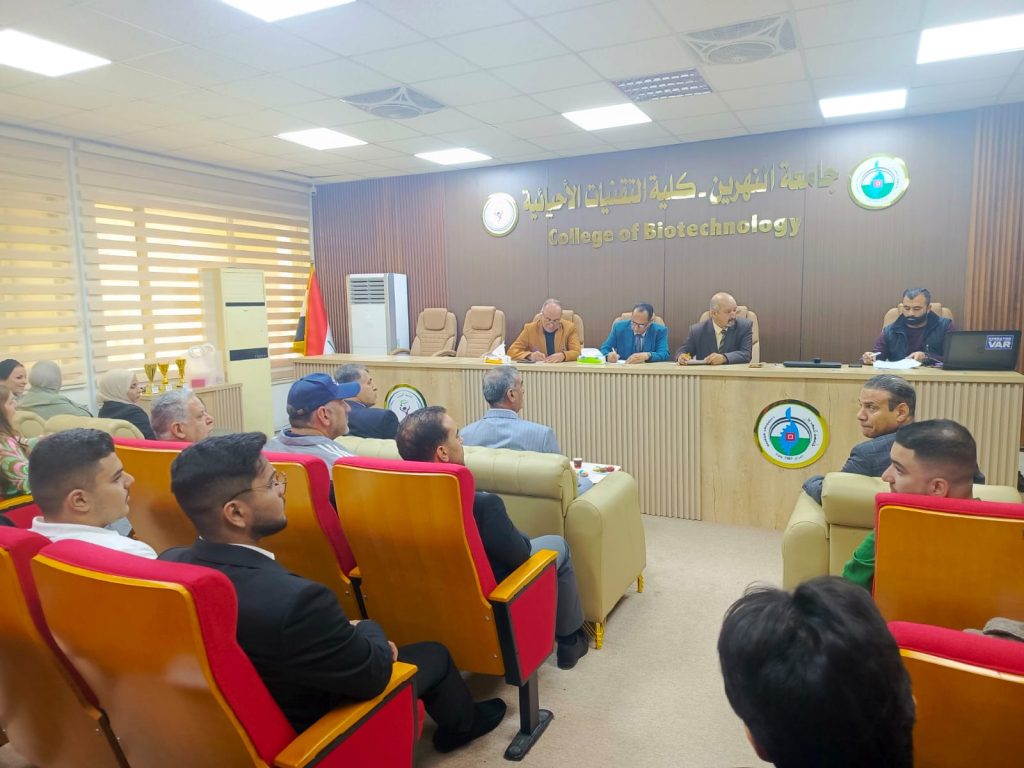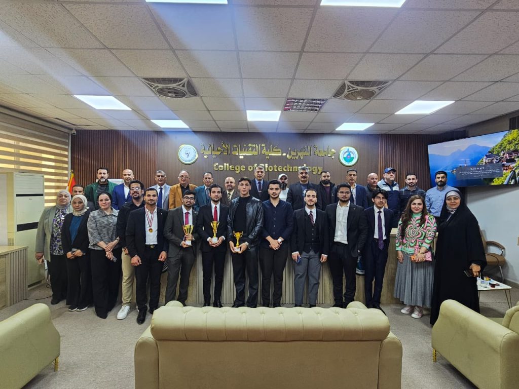 برعاية ودعم السيد عميد كلية التقنيات الأحيائية الأستاذ الدكتور محسن هاشم رسن المحترم، وبإشراف الأستاذ المساعد الدكتور مؤيد نوفل نايف، وبمتابعة المدرس أكثم محمود إبراهيم مسؤول شعبة النشاطات الطلابية، استضافت كلية التقنيات الأحيائية مسابقة الشعر العربي الفصيح لطلبة كليات الجامعة، والتي أقامتها رئاسة الجامعة/ قسم النشاطات الطلابية، ضمن المنهاج الوزاري السنوي للفصل الدراسي الثاني، وبالتعاون مع منظمة الكلمة الرائدة.وشهدت المسابقة مشاركة واسعة من طلبة الكليات، حيث مثل كلية التقنيات الأحيائية طالب الماجستير مصطفى أحمد، مقدماً أداءً متميزاً عكس المستوى الثقافي والأدبي لطلبة الكلية.وأسفرت نتائج المسابقة عن حصول:كلية العلوم السياسية: المركز الأولكلية الطب: المركز الثانيكلية الصيدلة: المركز الثالثكلية التقنيات الأحيائية: المركز الثالث مكررو تأكيداً لدعم عمادة الكلية للأنشطة الطلابية الهادفة، وحرصها على تنمية المواهب الأدبية والثقافية لدى الطلبة، بما يعزز حضورهم الفاعل في المحافل الجامعية.وتتقدم عمادة الكلية بالتهنئة للطلبة المشاركين، متمنية لهم المزيد من التألق والنجاح في مختلف الأنشطة العلمية والثقافية